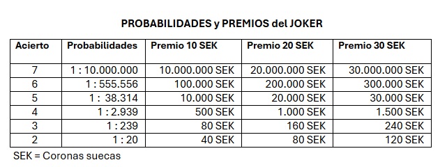 Es un super premio con un importe fijo de 25 millones de coronas que se puede ganar si: a) En cualquiera de los juegos Loto 1 o Loto 2 se aciertan los 7 números Y b) Se aciertan un mínimo de 2 números en el Joker.
